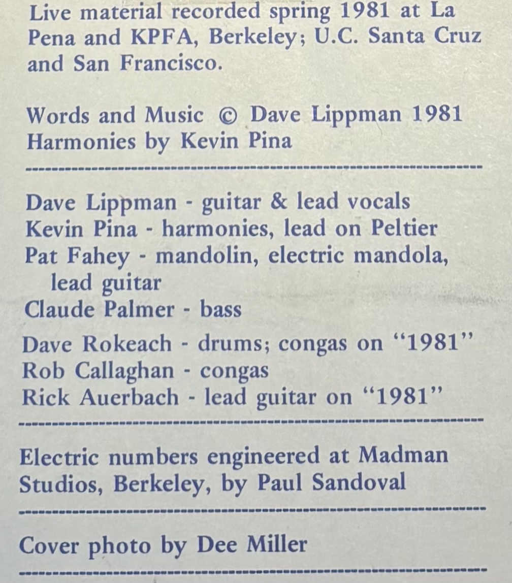 Dave Lippman’s first album, cassette only.